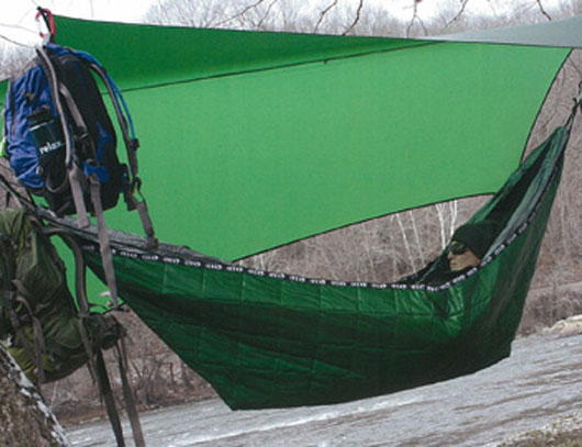I couldn't help, but think of my hammock wielding long time backpacking partner Andy when I saw this insulated beast. Chilly nights are pretty common among hammock sleepers, especially when there's a breeze. To prevent being victimized by cool drafts hammock sleepers have been known to carry heavier sleeping bags, an extra liner, sleep in layers, and sleep close to camp fires. These tricks are great and all, but carrying extra gear kind of defeats the purpose of traveling light with a hammock, and sleeping near the fire often leaves you smoked out. No worries, no more! ENO's insulated Ember hammock is made to provide the extra layer of warmth you need, without the hassle of carrying more gear.
